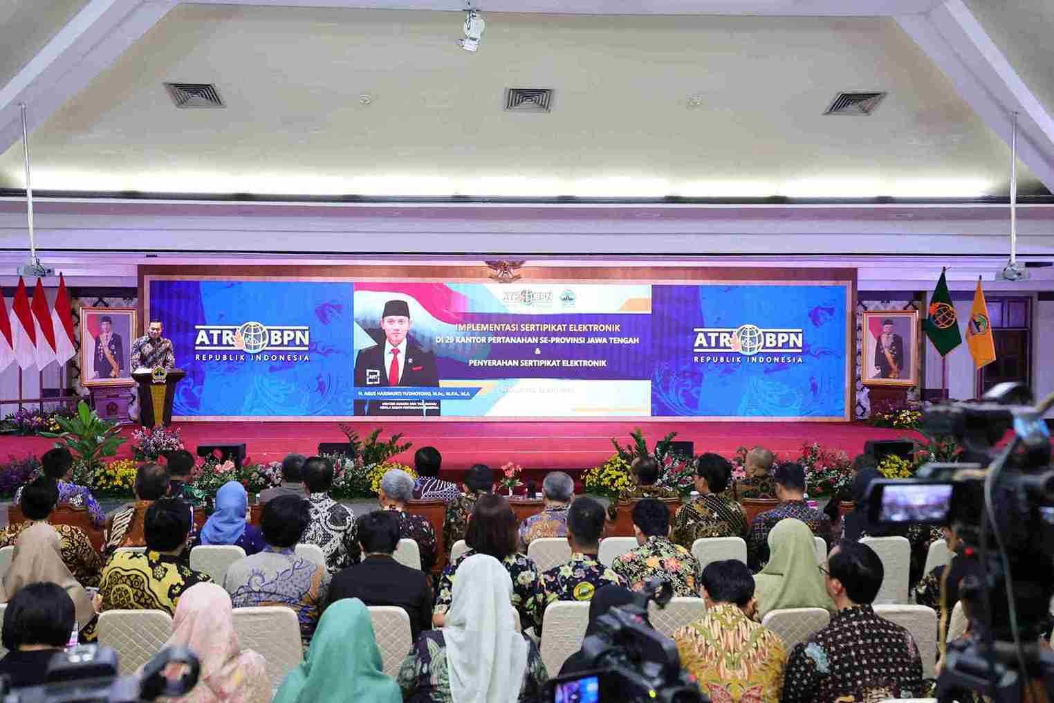 “Pemerintah Provinsi Jateng mendukung Kementerian ATR/BPN untuk mengakselerasi layanan sertipikat secara elektronik serta menerbitkan sertipikat tanah. Pengurusan sertipikat tanah lebih mudah dan cepat karena data informasi dapat di akses kapan pun, di mana pun, serta terhindar dari risiko kehilangan, bencana alam, dan pemalsuan,” ungkap Nana Sudjana.