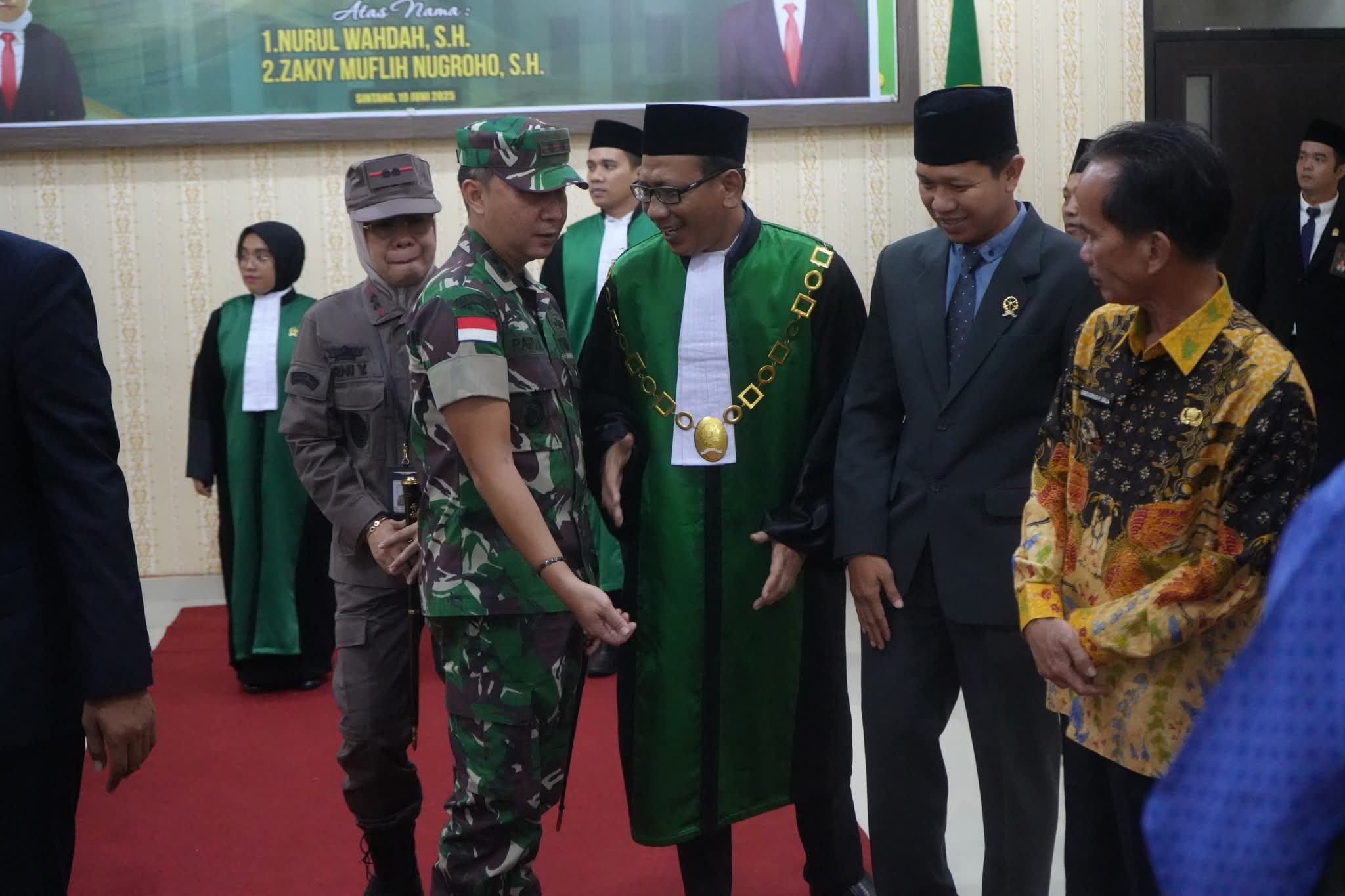 Sintang – Komandan Kodim 1205/Sintang, Letkol Inf Rangga Bayu Widiartha menghadiri kegiatan Pengantar Alih Tugas Ketua Pengadilan Agama Sintang yang dirangkaikan dengan Pengambilan Sumpah Jabatan dan Pelantikan Hakim Tingkat Pertama Pengadilan Agama Sintang, kegiatan ini berlangsung di Gedung Pengadilan Agama Sintang, Kamis (19/06/2025).