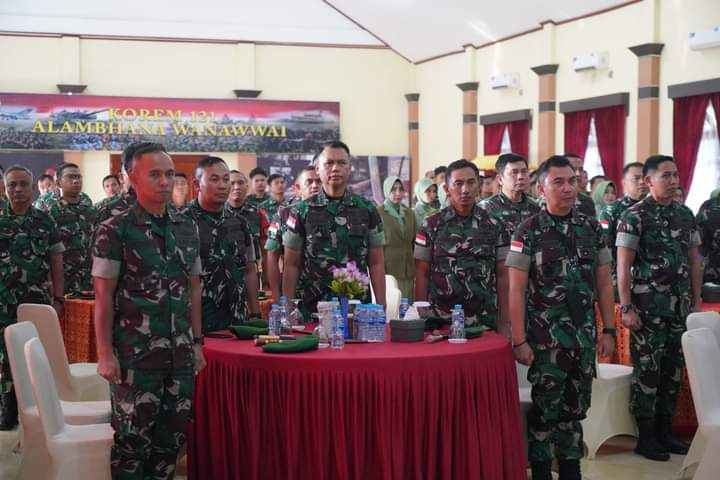 Kegiatan yang berlangsung di aula Makorem 121/Abw tersebut dipimpin langsung oleh Danrem 121/Abw Brigjen TNI Luqman Arief dan dihadiri juga oleh para Kasi Korem, Komandan Satuan jajaran Korem 121/Abw, Kabalak Aju, serta tamu undangan lainnya.