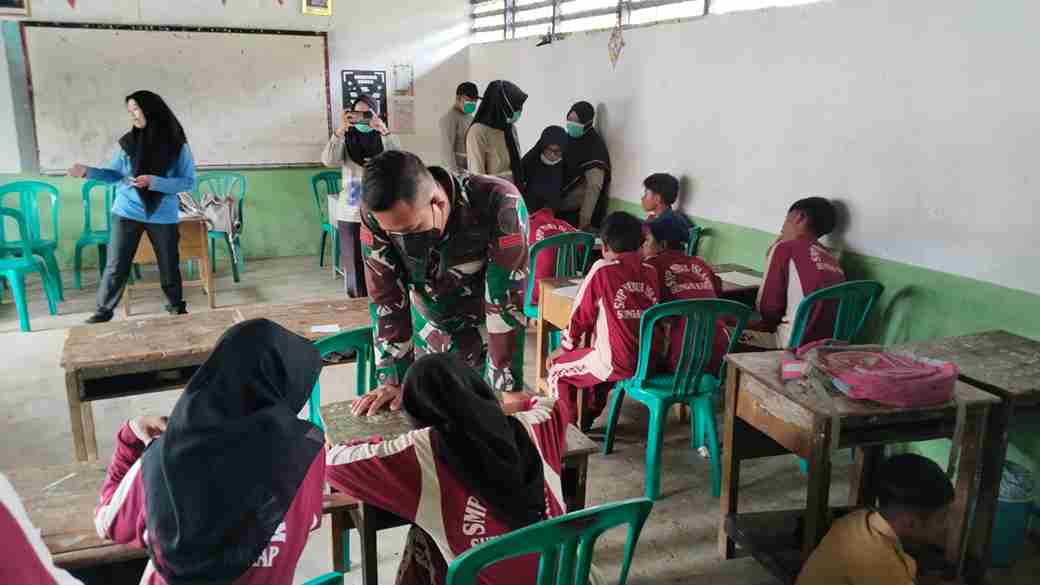 Kubu Raya – Satgas TMMD Ke 126 Tahun 2025 Kodim 1207/Pontianak Bersama Puskesmas PAL IX berikan layanan pemeriksaan kesehatan Gratis Kepada Anak Sekolah. Bertempat di SMP Nurul Islam Sungai Kakap Desa PAL IX Kecamatan Sungai Kakap, Kabupaten Kubu Raya, Jum’at (17/10/2025).