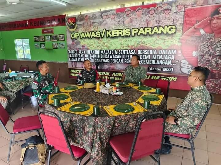 Malaysia-Dalam rangka menjalin silaturahmi, Dansatgas Pamtas RI-Malaysia Yonarmed 16/Tumbak Kaputing Letkol Arm Andreas Prabowo Putro, S.I.Pem., M.I.P., M.Han., sambangi Kamp TDM Balai Ringin. Bertempat di Kampung Balai Ringin, Serian, Sarawak, Malaysia Selasa (28/5/2024).