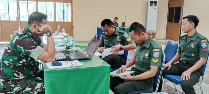 Tim Post Audit Itdam XII/Tanjungpura yang dipimpin oleh Kolonel Inf Nanang Prianggodo, S.Sos., M.A.P., bersama empat orang pengawas lainnya melakukan post Audit Was internal tahun anggaran 2023 Kodim 1206/Putussibau.
