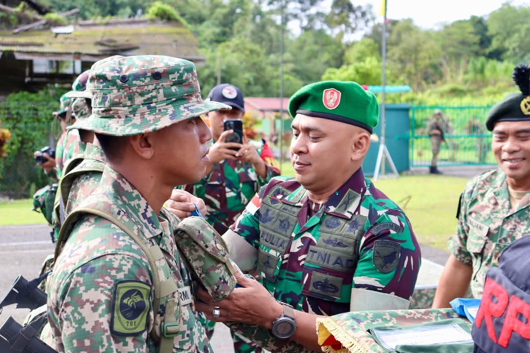 Sintang – Kaisops Kolakops Rem 121/Abw Letkol Inf Jumadal Aulia mewakili Dankolakops Rem 121/Abw Brigjen TNI Luqman Arief, S.I.P., M.I.P., hadiri upacara pembukaan Patkor (Patroli Terkoordinasi) Seri 2 Tahun 2024 di Pos Gabma Tebedu, Sarawak, Malaysia, Sabtu (14/12/2024).