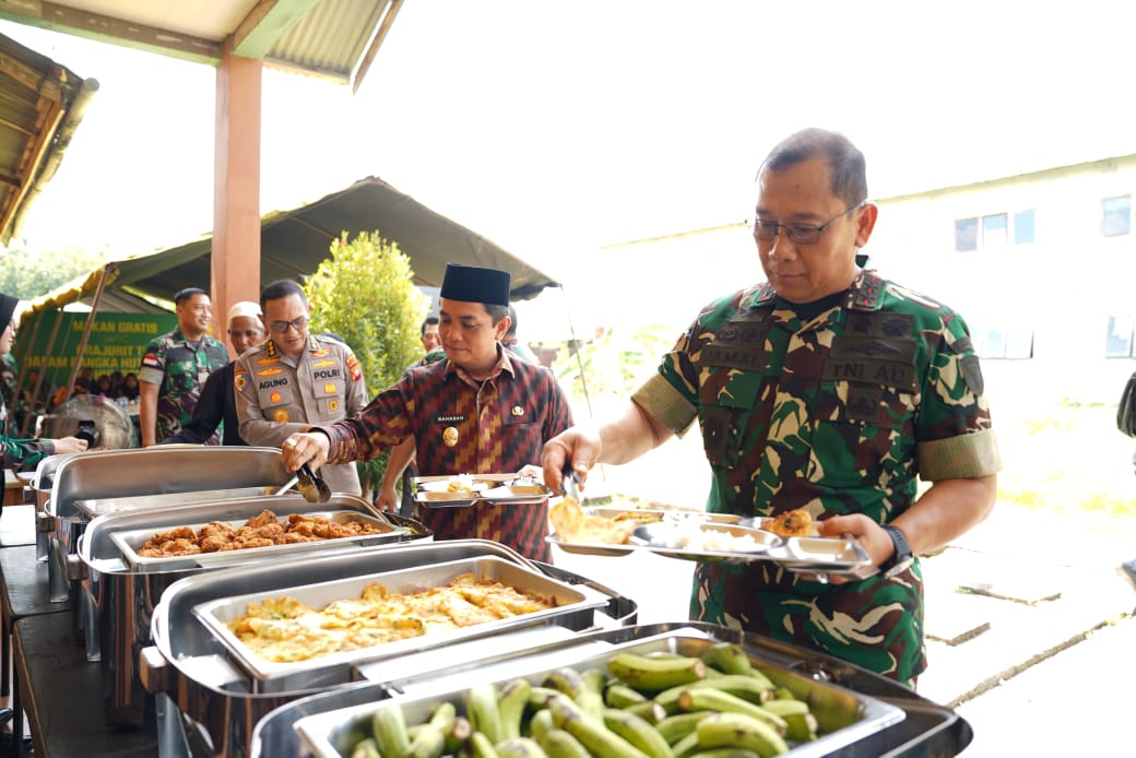 “Sekarang lagi ngetren makan bergizi gratis, ya kita ajak makan, hanya konsepnya beda. Kita tidak melalui MBG tetapi dapur yang kita geser kesini. Maka judulnya adalah Makan Gratis Ala Prajurit TNI. Jadi makannya pakai ompreng, tidak menggunakan standarisasi yang dibuat oleh BGN. Ini masih fresh karena masaknya baru tadi pagi. Jam 6 baru mulai proses masak jadi masih panas semua,” jelasnya.