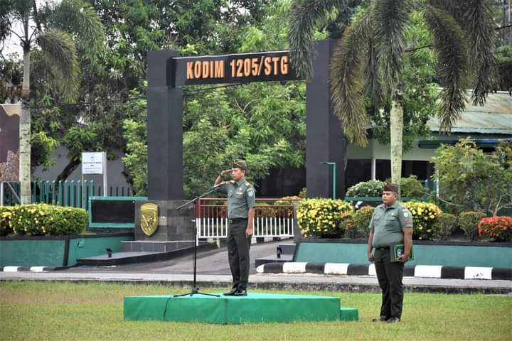 Sintang (Harian Sintang) – Komando Distrik Militer (Kodim) 1205/Sintang menggelar kegiatan Upacara Bendera yang rutin dilaksanakan setiap hari Senin, kegiatan berlangsung di Lapangan Sepak Bola Makodim, Jalan Tanjung Puri, Kecamatan Sintang, Kabupaten Sintang. Senin, (29/04/2024).