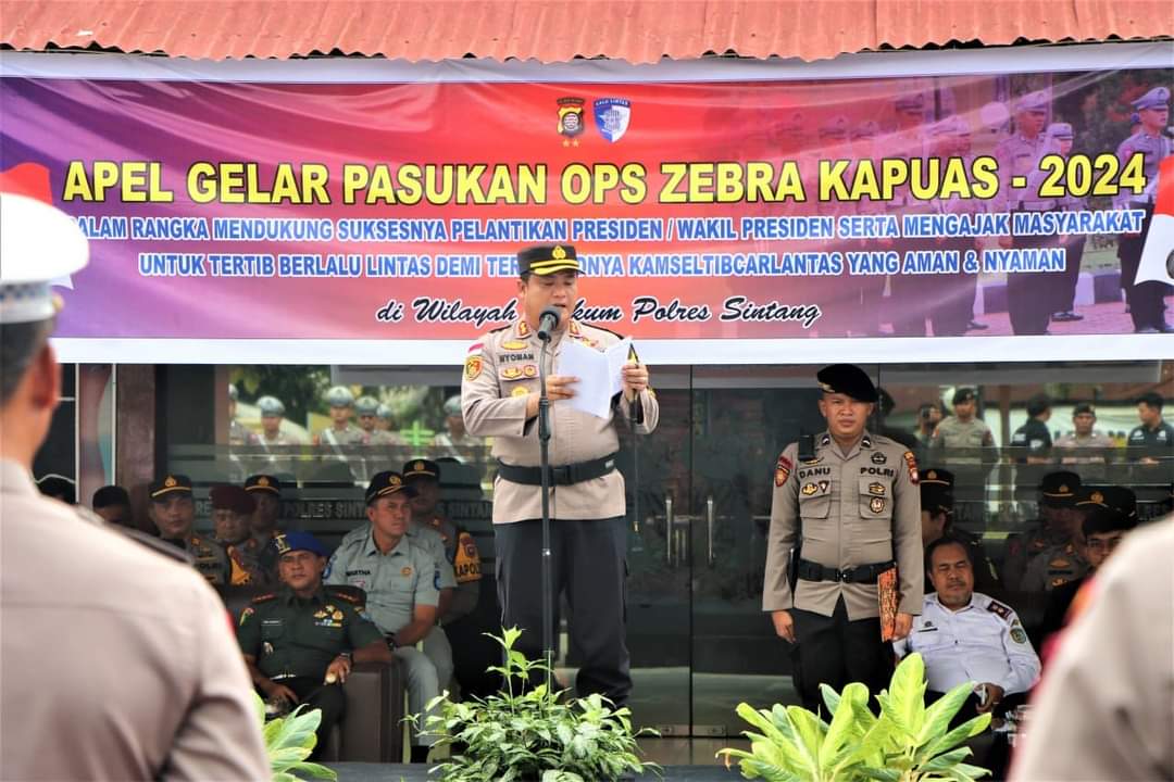 Kapolres Sintang dalam amanatnya mengatakan dengan mengusung tema “Dalam Rangka Mendukung Suksesnya Pelantikan Presiden dan Wakil Presiden Serta Mengajak Masyarakat Untuk Tertib Berlalu Lintas Demi Terwujudnya KAMSELTIBCARLANTAS Yang Aman dan Nyaman”, Operasi Zebra Kapuas ini memiliki dua tujuan utama yaitu menurunkan jumlah kejadian serta fatalitas korban kecelakaan lalu lintas dan meningkatkan disiplin masyarakat dalam berlalu lintas.