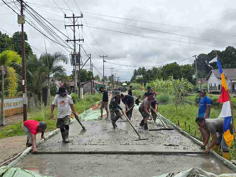 Kubu Raya – Warga dan Satgas TMMD Ke 126 Kodim 1207/Pontianak bergotong royong dengan antusias memasang papan mal sebagai bagian dari program pembangunan. Bertempat di Jalan Kalimas Hulu Desa PAL IX Kecamatan Sungai Kakap Kabupaten Kubu Raya, Kamis (23/10/2025).