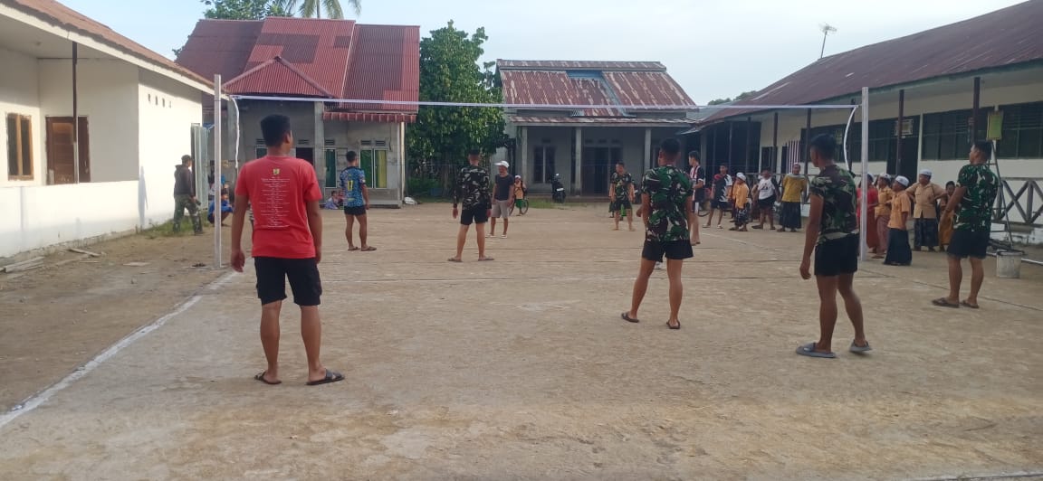 Olahraga bersama warga, Satgas TMMD Ke 126 Kodim 1207/Pontianak Laksanakan Olahraga Bola Voli bersama Warga bertempat di Jalan Kalimas Hulu Desa PAL IX Kecamatan Sungai Kakap, Kabupaten Kubu Raya, Senin (03/10/2025).